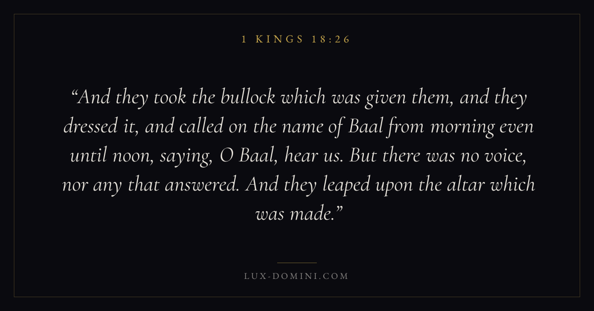 And they took the bullock which was given them, and they dressed it, and called on the name of Baal from morning even until noon, saying, O Baal, hear us. But there was no voice, nor any that answered. And they leaped upon the altar which was made.