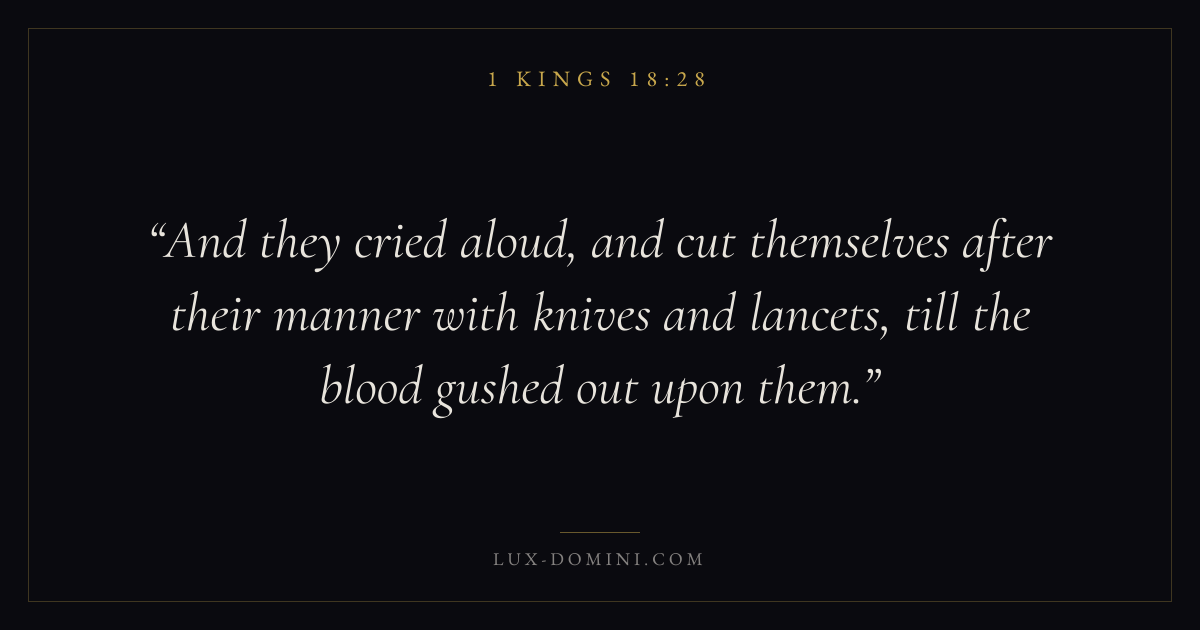 And they cried aloud, and cut themselves after their manner with knives and lancets, till the blood gushed out upon them.