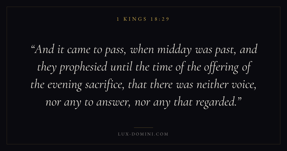 And it came to pass, when midday was past, and they prophesied until the time of the offering of the evening sacrifice, that there was neither voice, nor any to answer, nor any that regarded.