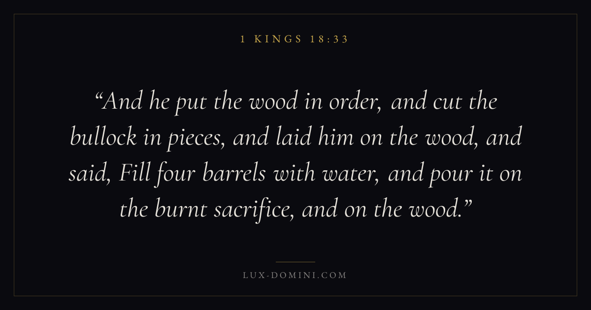 And he put the wood in order, and cut the bullock in pieces, and laid him on the wood, and said, Fill four barrels with water, and pour it on the burnt sacrifice, and on the wood.