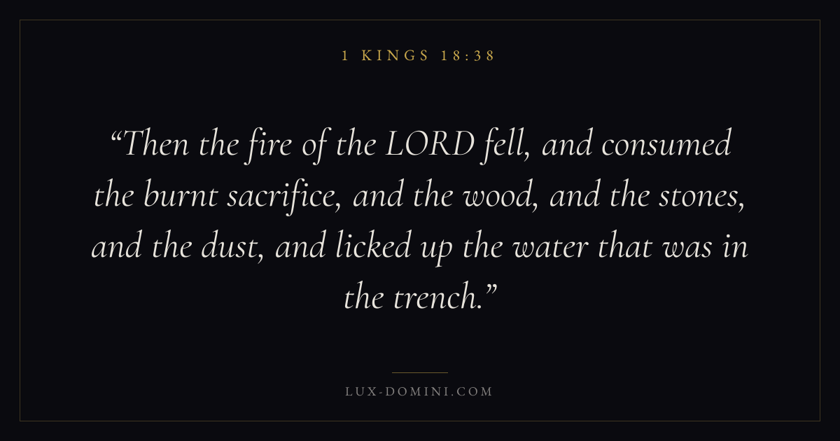 Then the fire of the LORD fell, and consumed the burnt sacrifice, and the wood, and the stones, and the dust, and licked up the water that was in the trench.