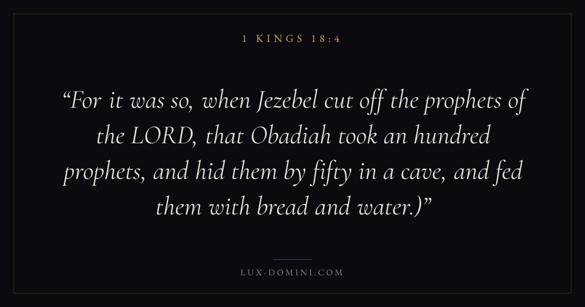 For it was so, when Jezebel cut off the prophets of the LORD, that Obadiah took an hundred prophets, and hid them by fifty in a cave, and fed them with bread and water.)