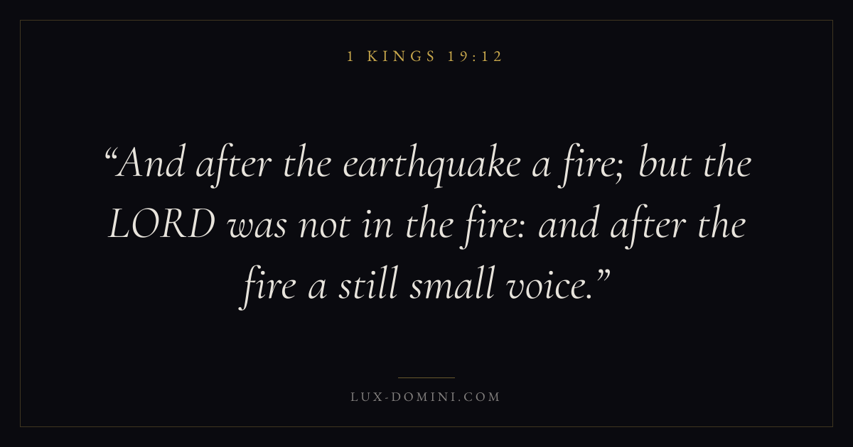 And after the earthquake a fire; but the LORD was not in the fire: and after the fire a still small voice.