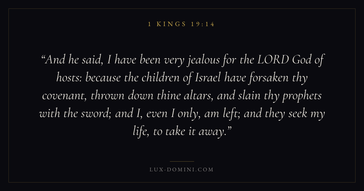 And he said, I have been very jealous for the LORD God of hosts: because the children of Israel have forsaken thy covenant, thrown down thine altars, and slain thy prophets with the sword; and I, even I only, am left; and they seek my life, to take it away.