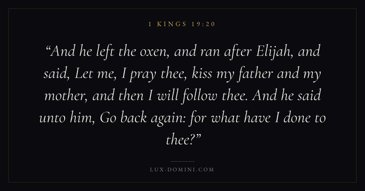 And he left the oxen, and ran after Elijah, and said, Let me, I pray thee, kiss my father and my mother, and then I will follow thee. And he said unto him, Go back again: for what have I done to thee?