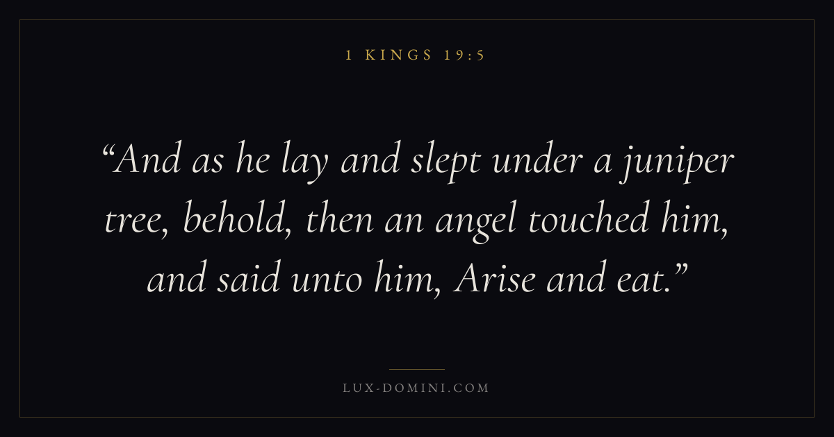 And as he lay and slept under a juniper tree, behold, then an angel touched him, and said unto him, Arise and eat.