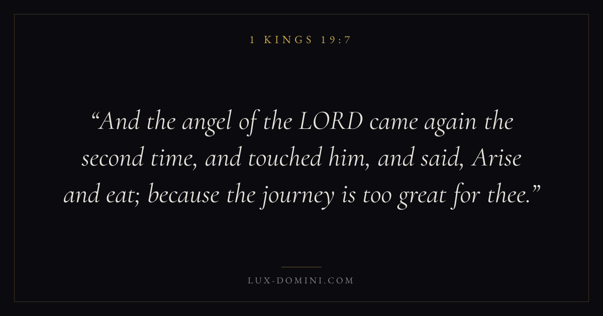 And the angel of the LORD came again the second time, and touched him, and said, Arise and eat; because the journey is too great for thee.