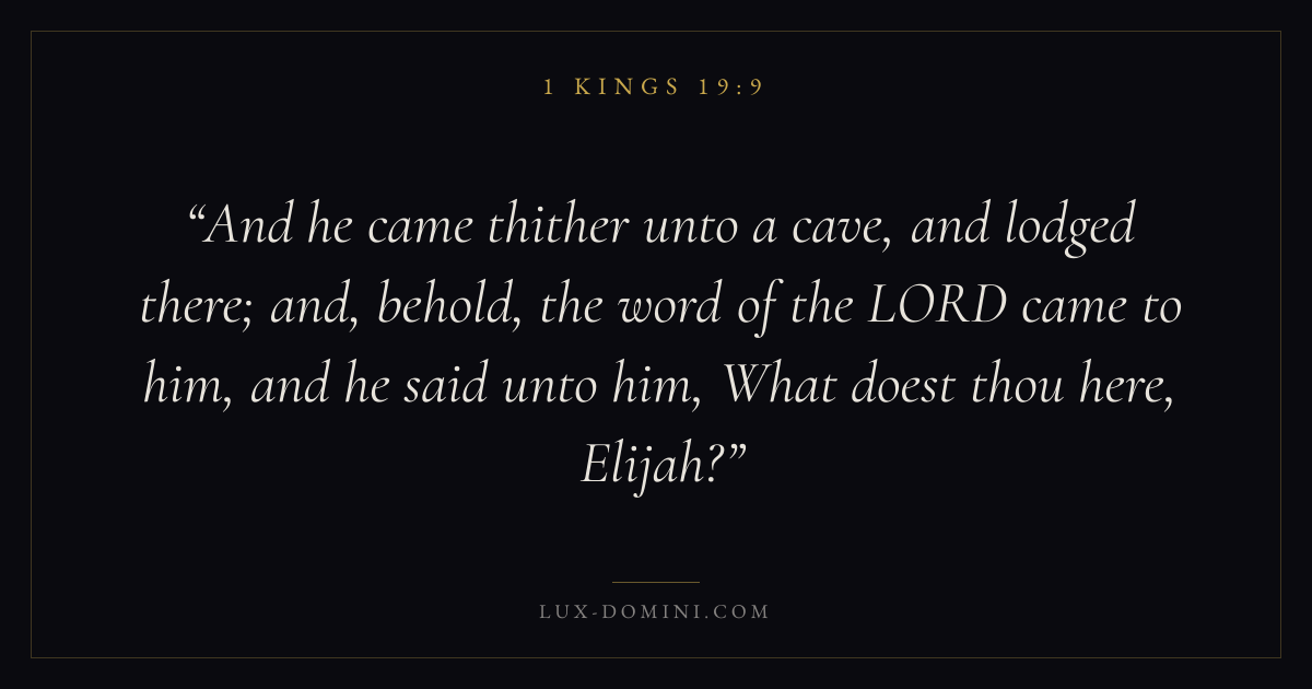 And he came thither unto a cave, and lodged there; and, behold, the word of the LORD came to him, and he said unto him, What doest thou here, Elijah?
