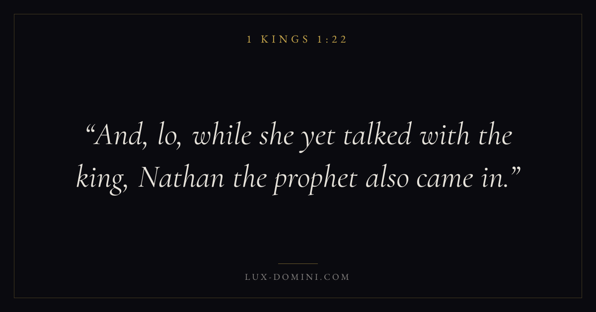 And, lo, while she yet talked with the king, Nathan the prophet also came in.