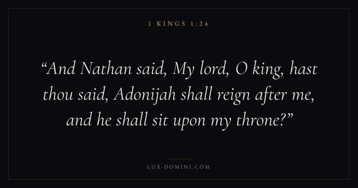 And Nathan said, My lord, O king, hast thou said, Adonijah shall reign after me, and he shall sit upon my throne?