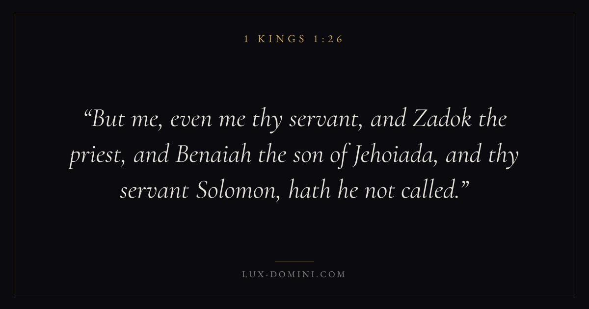 But me, even me thy servant, and Zadok the priest, and Benaiah the son of Jehoiada, and thy servant Solomon, hath he not called.