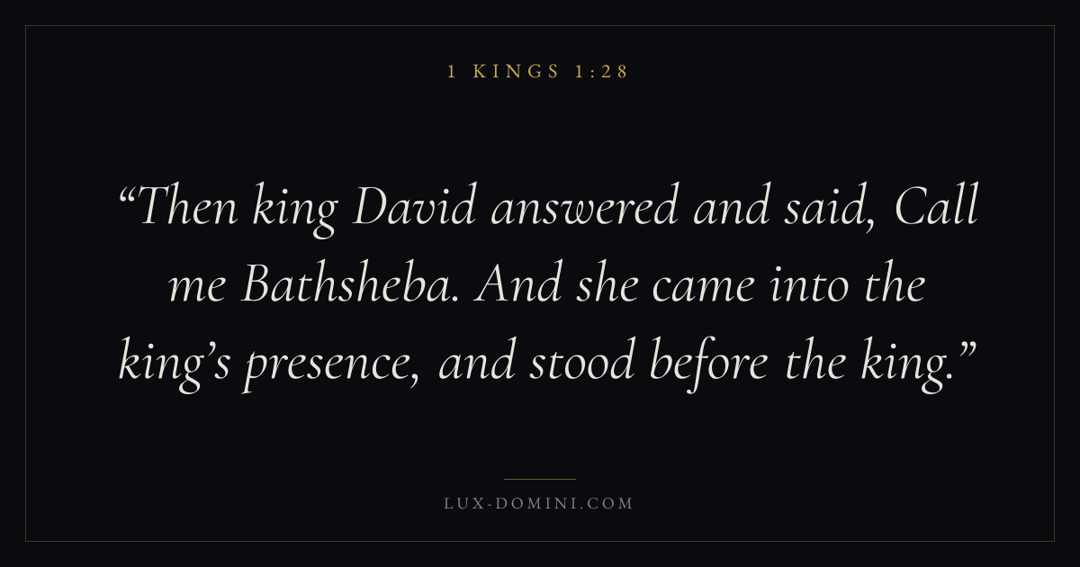 Then king David answered and said, Call me Bathsheba. And she came into the king’s presence, and stood before the king.