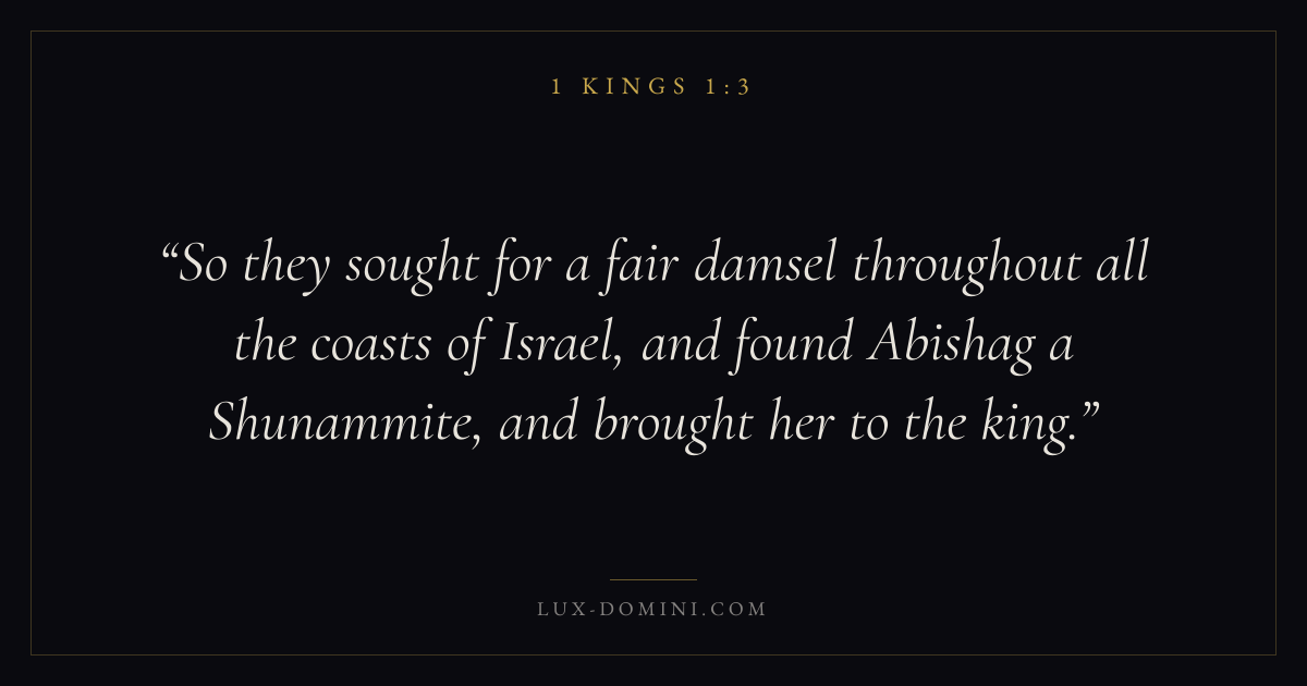 So they sought for a fair damsel throughout all the coasts of Israel, and found Abishag a Shunammite, and brought her to the king.