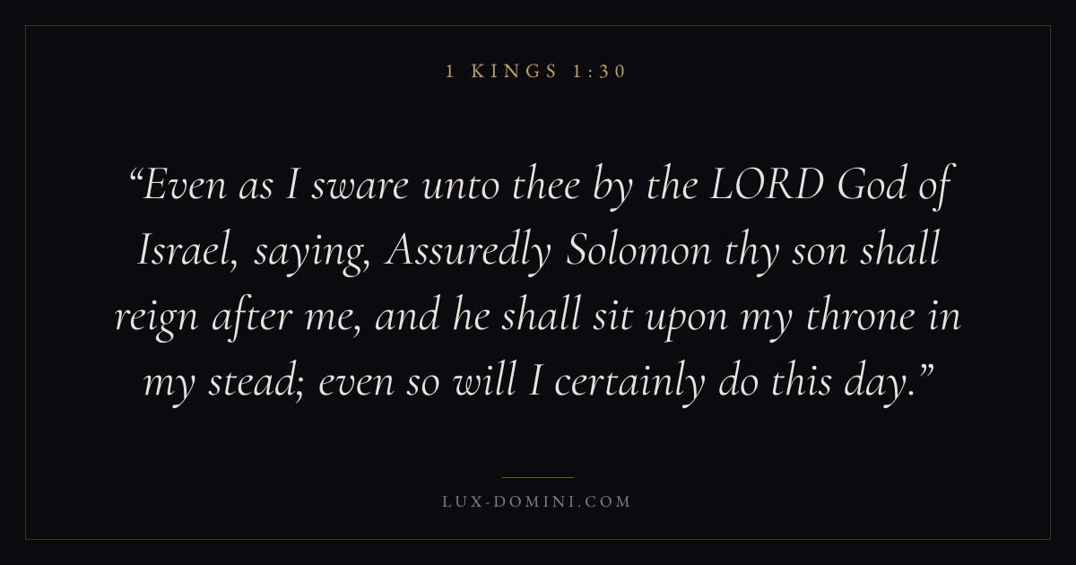 Even as I sware unto thee by the LORD God of Israel, saying, Assuredly Solomon thy son shall reign after me, and he shall sit upon my throne in my stead; even so will I certainly do this day.