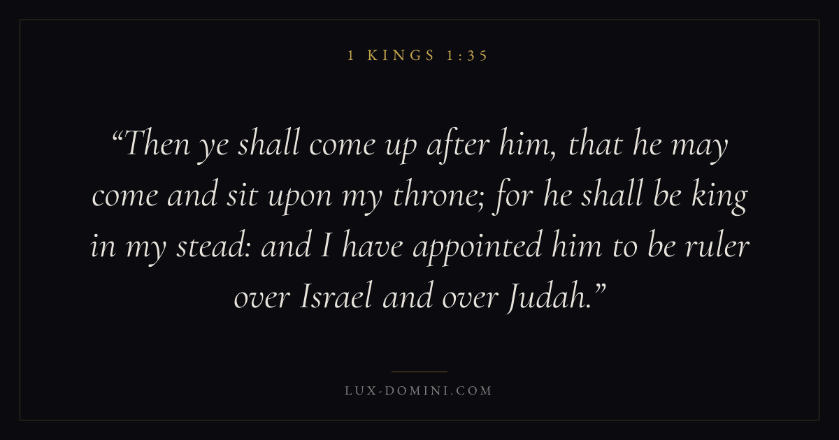 Then ye shall come up after him, that he may come and sit upon my throne; for he shall be king in my stead: and I have appointed him to be ruler over Israel and over Judah.