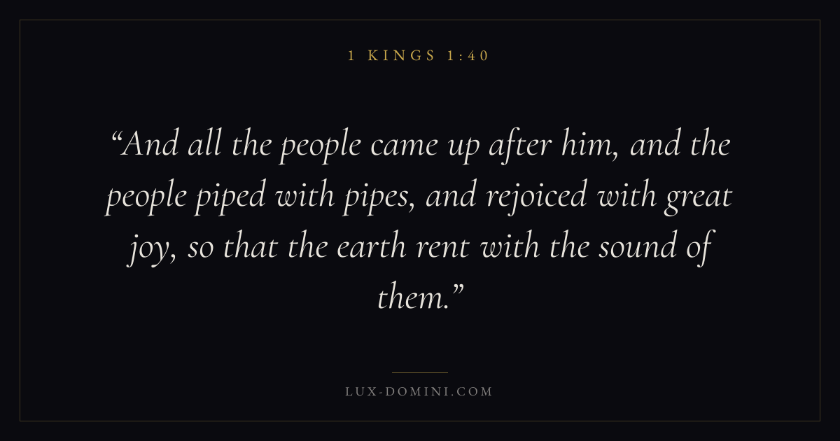 And all the people came up after him, and the people piped with pipes, and rejoiced with great joy, so that the earth rent with the sound of them.