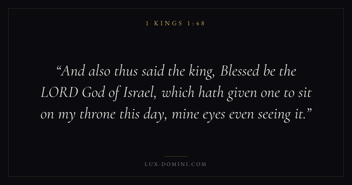 And also thus said the king, Blessed be the LORD God of Israel, which hath given one to sit on my throne this day, mine eyes even seeing it.
