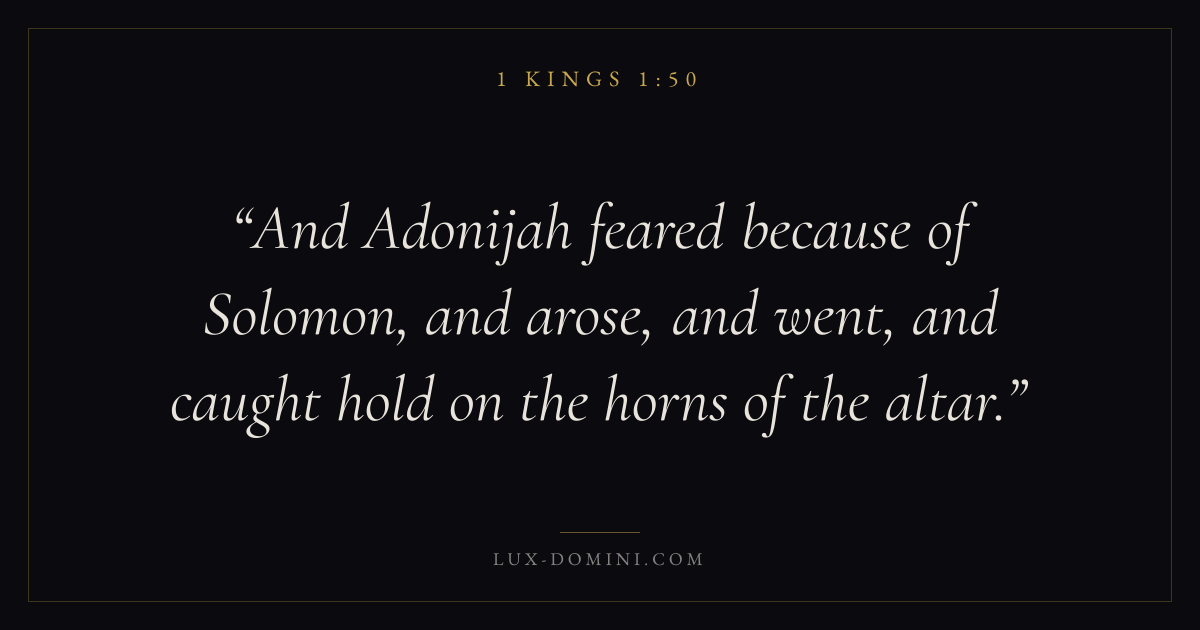 And Adonijah feared because of Solomon, and arose, and went, and caught hold on the horns of the altar.