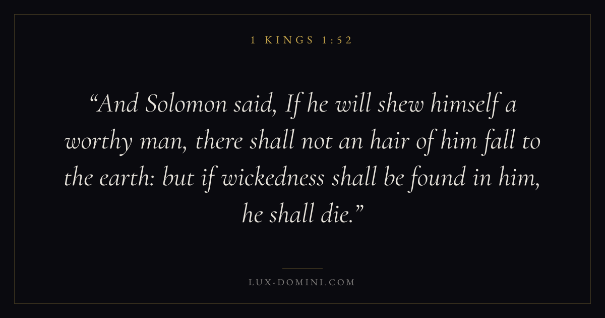 And Solomon said, If he will shew himself a worthy man, there shall not an hair of him fall to the earth: but if wickedness shall be found in him, he shall die.