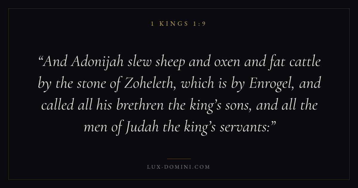 And Adonijah slew sheep and oxen and fat cattle by the stone of Zoheleth, which is by Enrogel, and called all his brethren the king’s sons, and all the men of Judah the king’s servants: