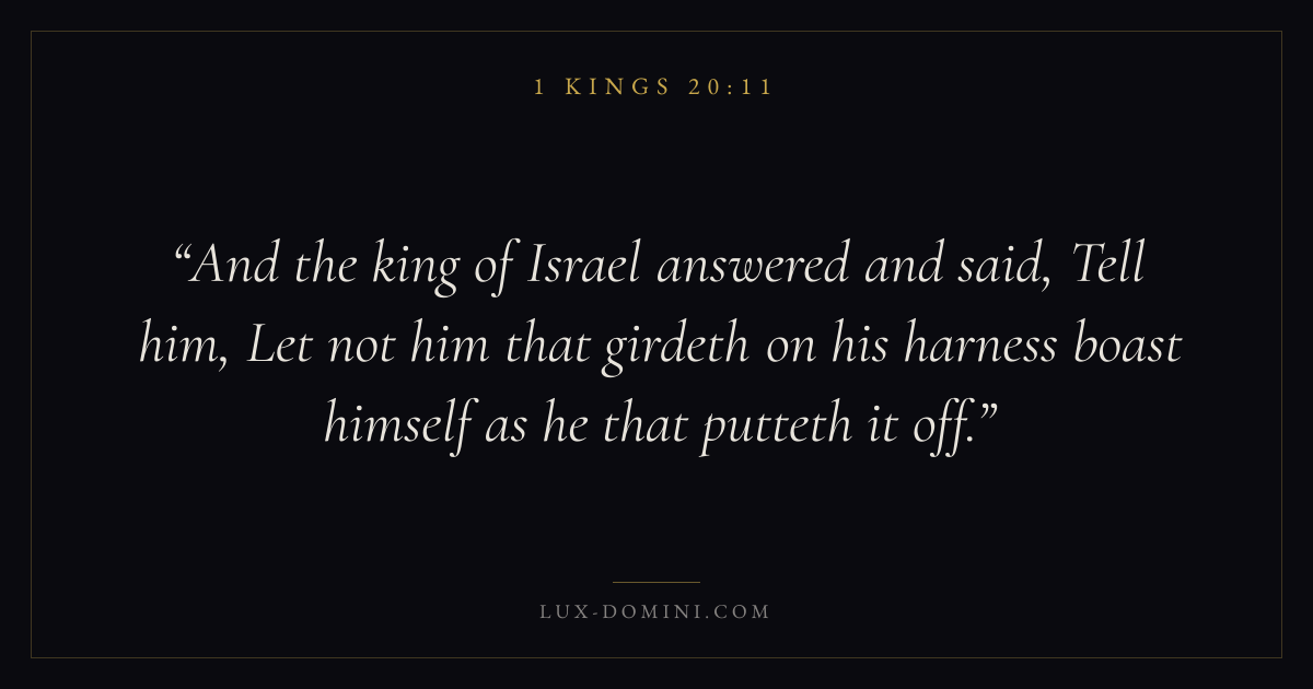 And the king of Israel answered and said, Tell him, Let not him that girdeth on his harness boast himself as he that putteth it off.