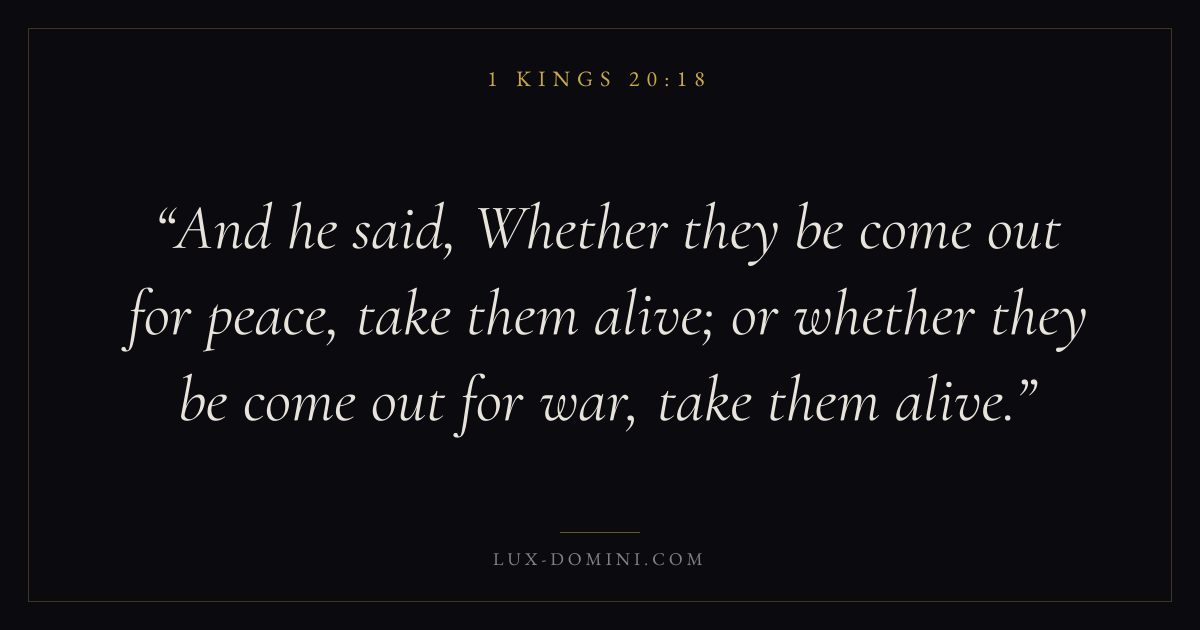 And he said, Whether they be come out for peace, take them alive; or whether they be come out for war, take them alive.