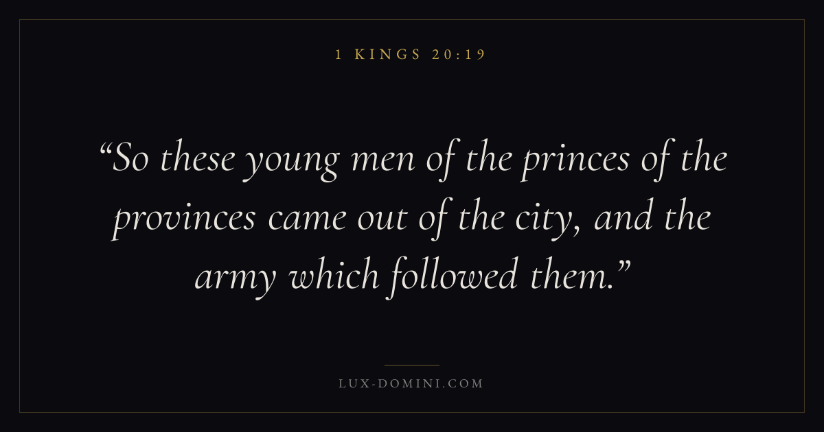 So these young men of the princes of the provinces came out of the city, and the army which followed them.