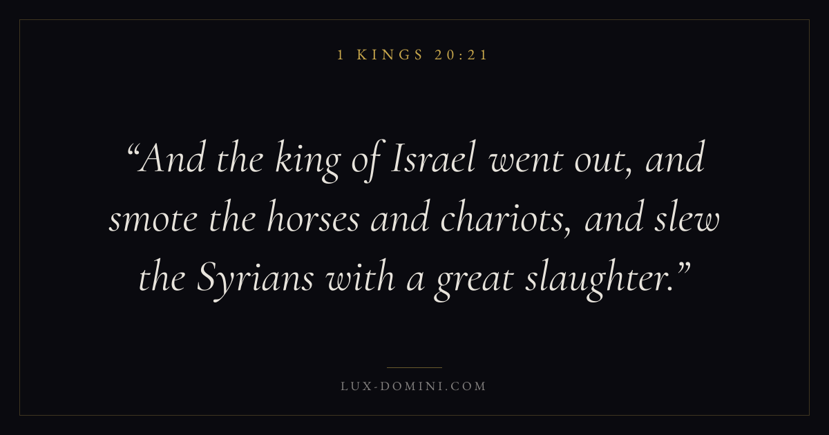 And the king of Israel went out, and smote the horses and chariots, and slew the Syrians with a great slaughter.