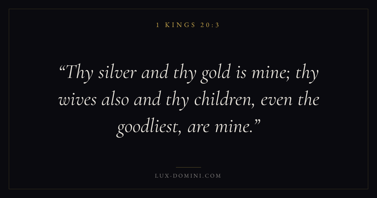 Thy silver and thy gold is mine; thy wives also and thy children, even the goodliest, are mine.