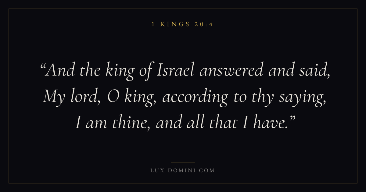 And the king of Israel answered and said, My lord, O king, according to thy saying, I am thine, and all that I have.