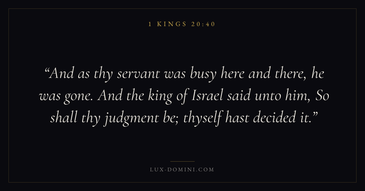 And as thy servant was busy here and there, he was gone. And the king of Israel said unto him, So shall thy judgment be; thyself hast decided it.