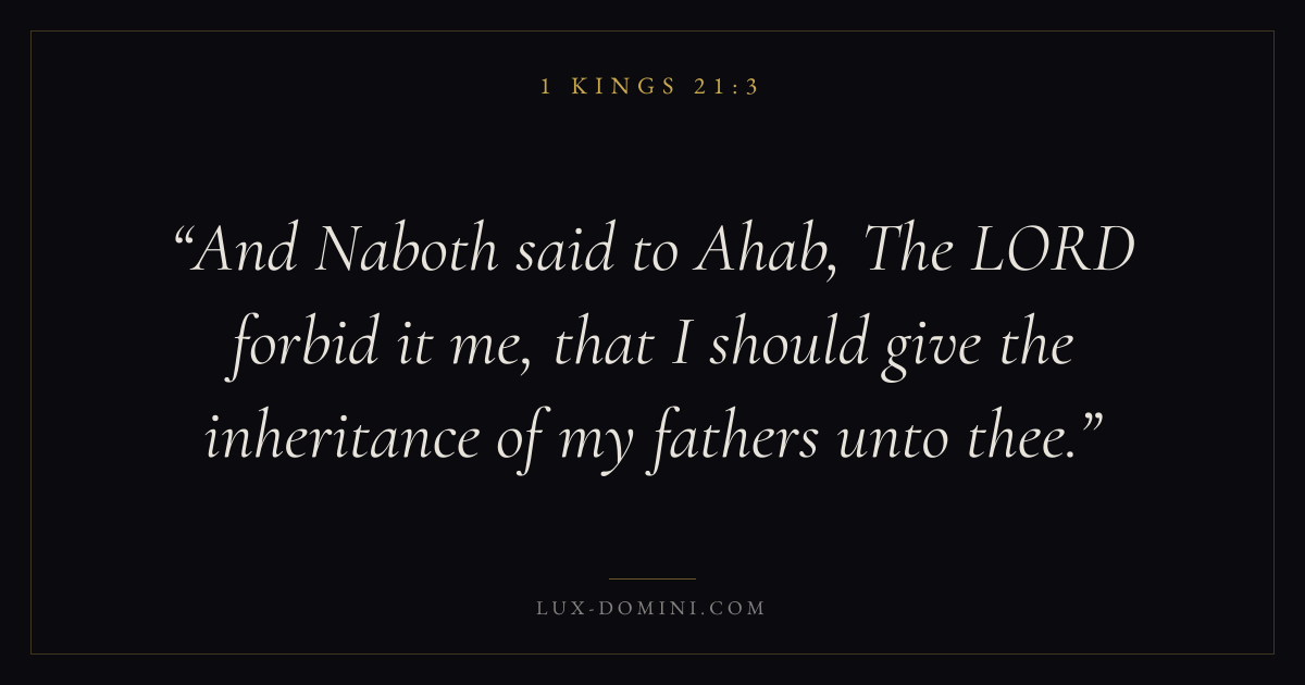 And Naboth said to Ahab, The LORD forbid it me, that I should give the inheritance of my fathers unto thee.