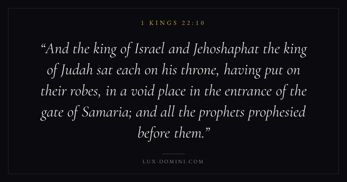 And the king of Israel and Jehoshaphat the king of Judah sat each on his throne, having put on their robes, in a void place in the entrance of the gate of Samaria; and all the prophets prophesied before them.