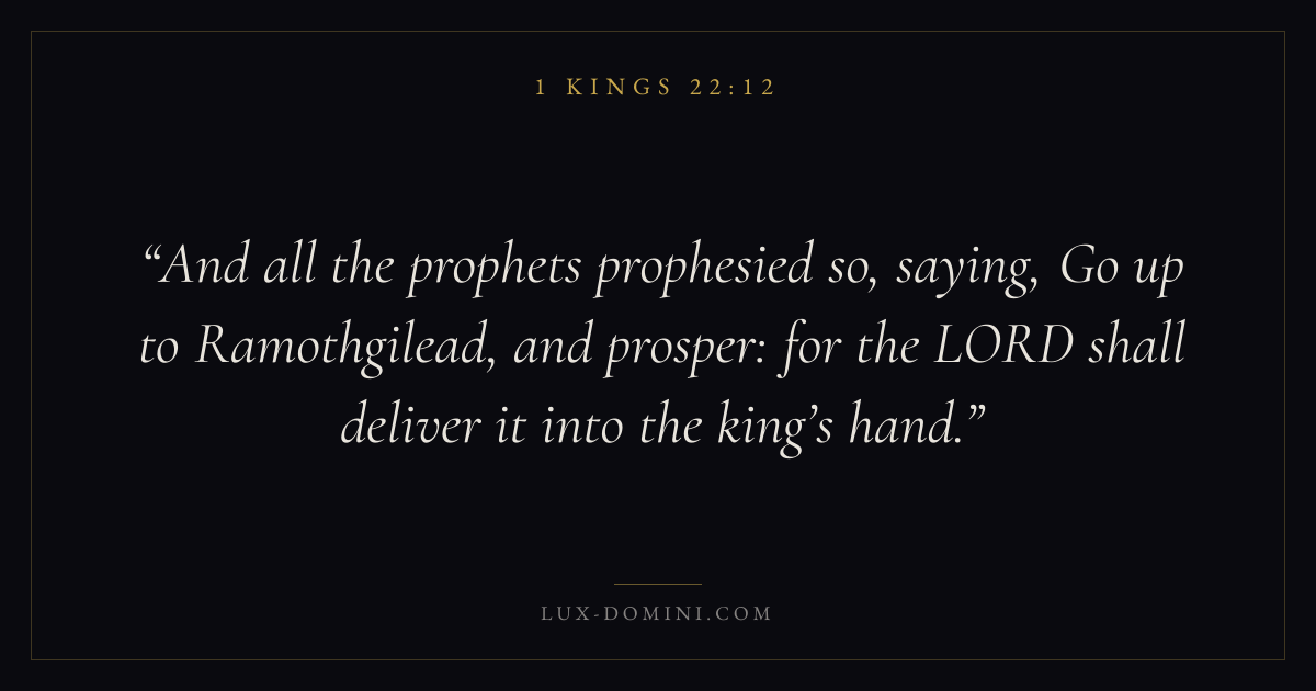 And all the prophets prophesied so, saying, Go up to Ramothgilead, and prosper: for the LORD shall deliver it into the king’s hand.