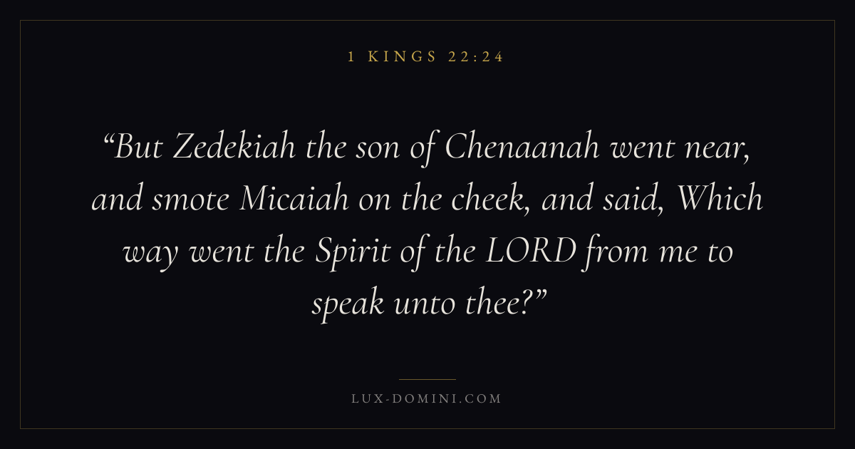 But Zedekiah the son of Chenaanah went near, and smote Micaiah on the cheek, and said, Which way went the Spirit of the LORD from me to speak unto thee?
