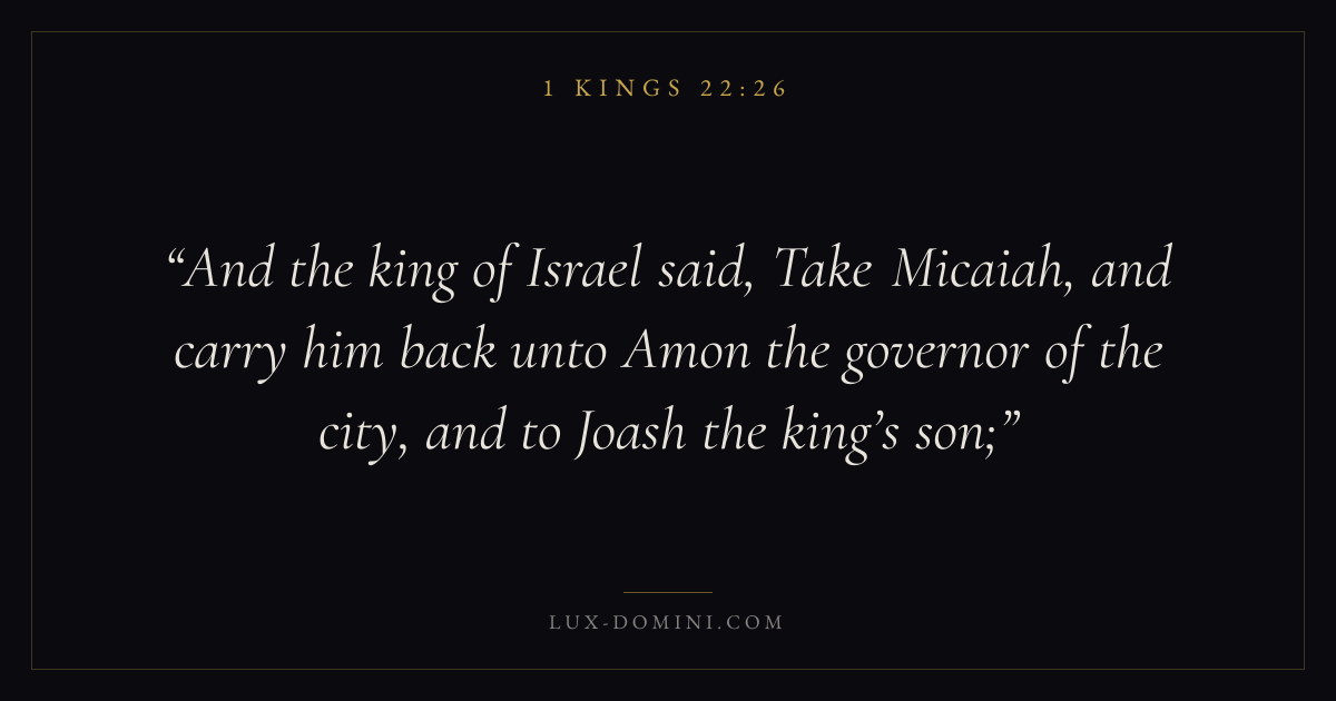 And the king of Israel said, Take Micaiah, and carry him back unto Amon the governor of the city, and to Joash the king’s son;