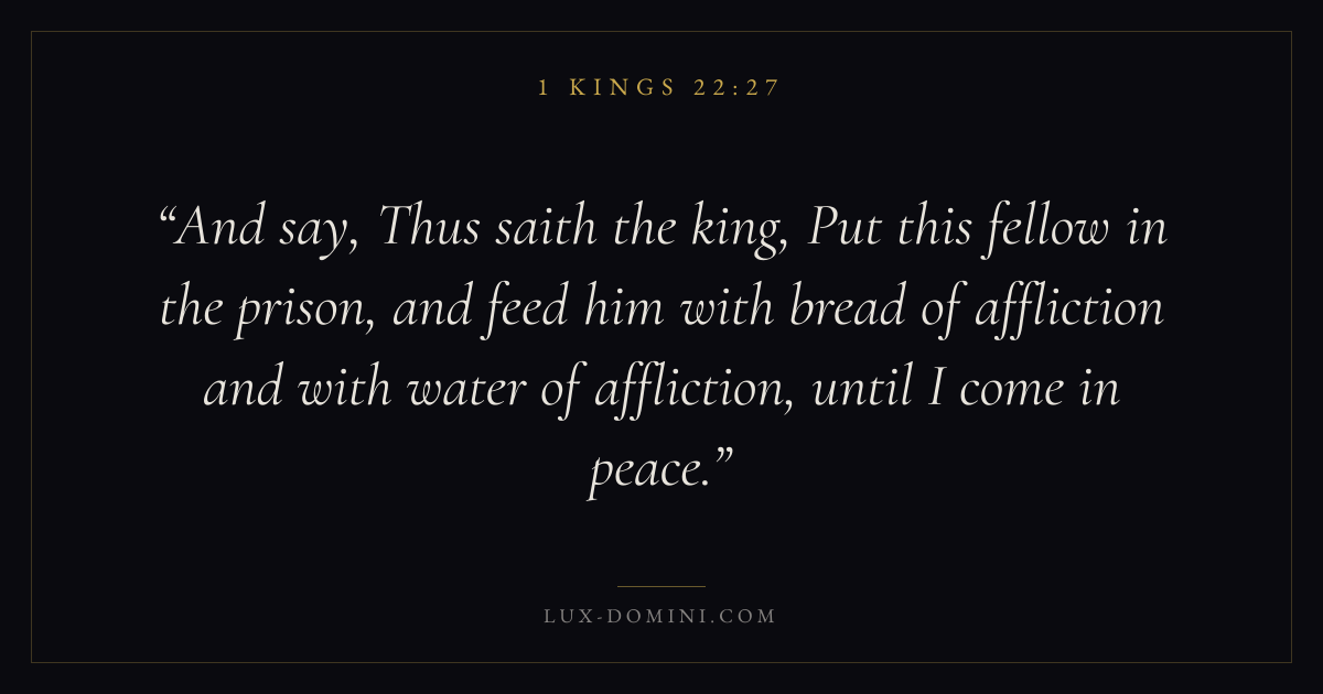 And say, Thus saith the king, Put this fellow in the prison, and feed him with bread of affliction and with water of affliction, until I come in peace.