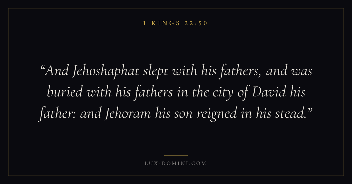 And Jehoshaphat slept with his fathers, and was buried with his fathers in the city of David his father: and Jehoram his son reigned in his stead.