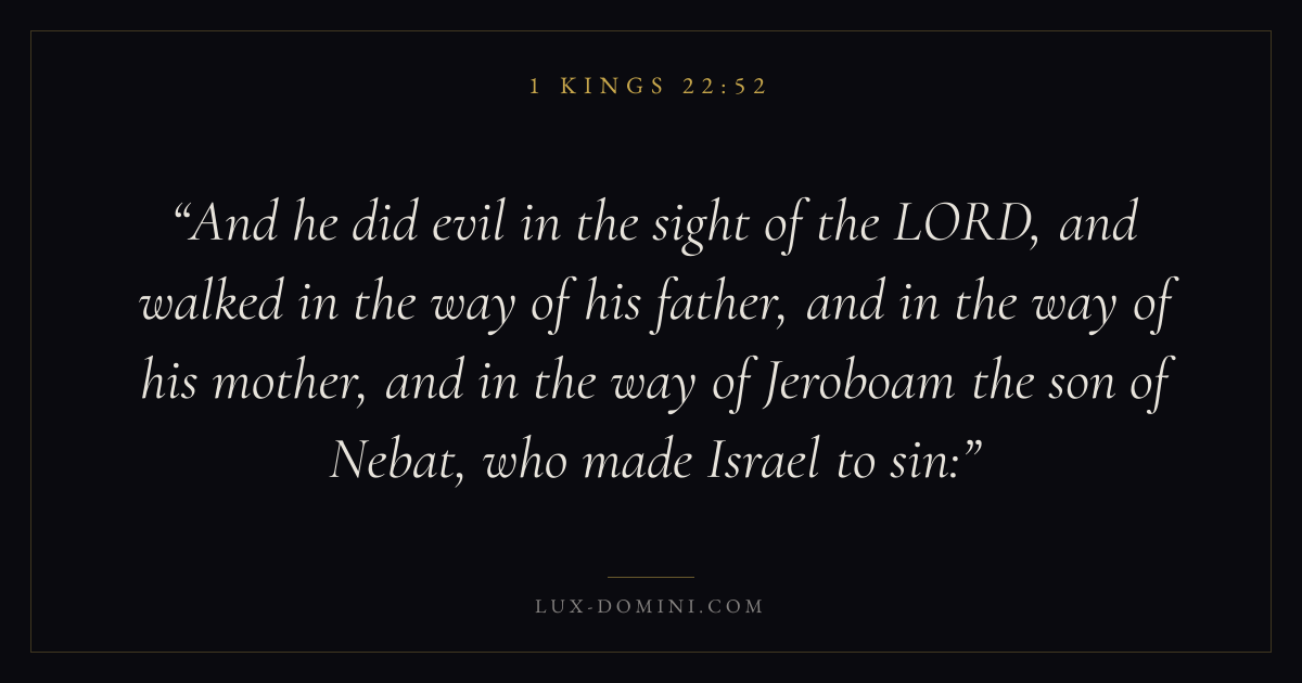 And he did evil in the sight of the LORD, and walked in the way of his father, and in the way of his mother, and in the way of Jeroboam the son of Nebat, who made Israel to sin: