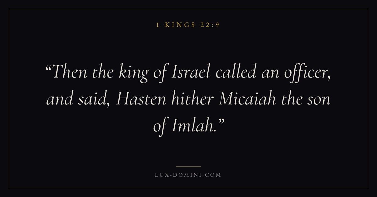 Then the king of Israel called an officer, and said, Hasten hither Micaiah the son of Imlah.