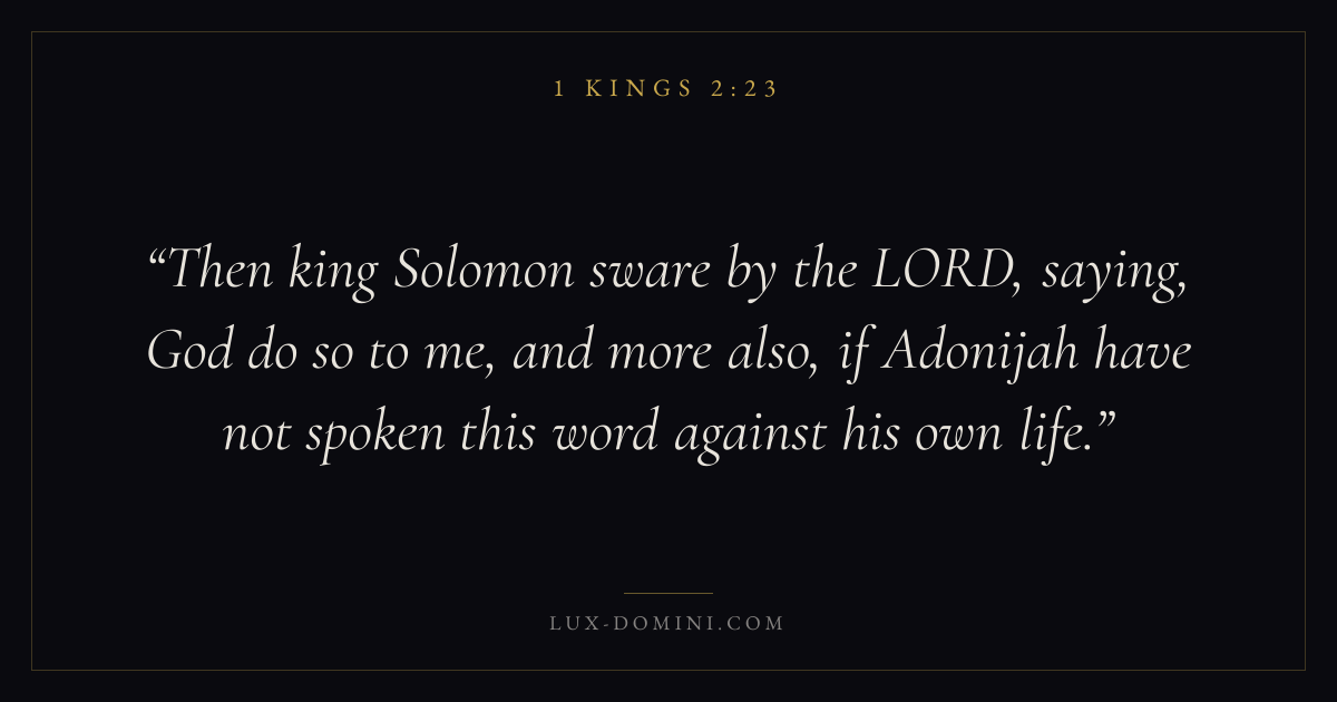 Then king Solomon sware by the LORD, saying, God do so to me, and more also, if Adonijah have not spoken this word against his own life.