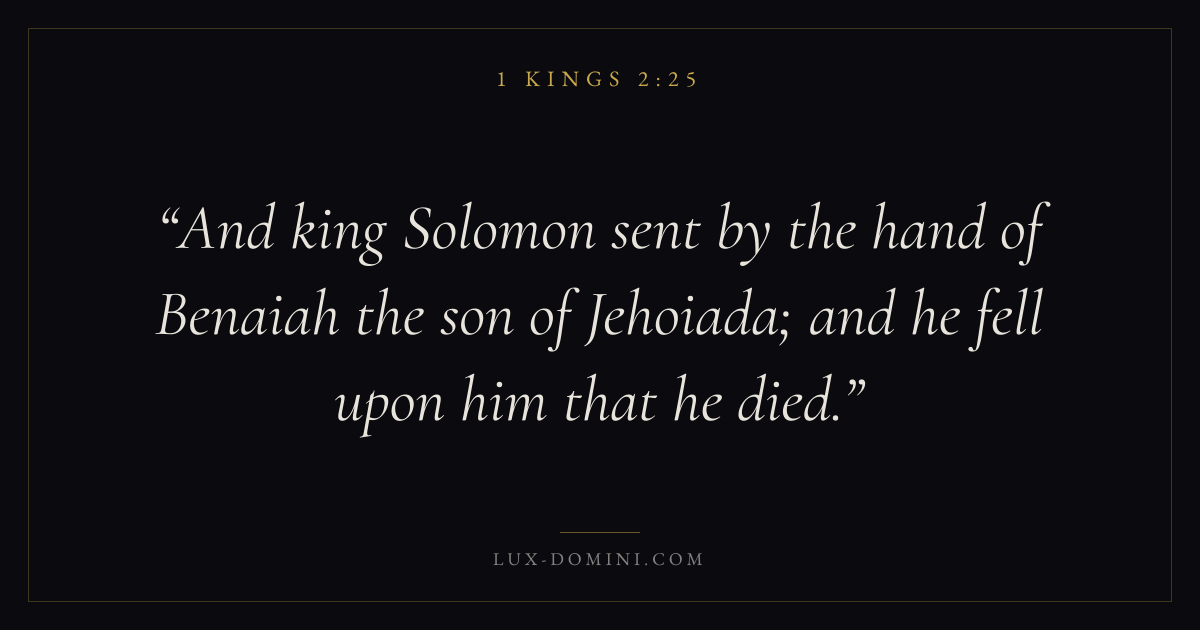 And king Solomon sent by the hand of Benaiah the son of Jehoiada; and he fell upon him that he died.