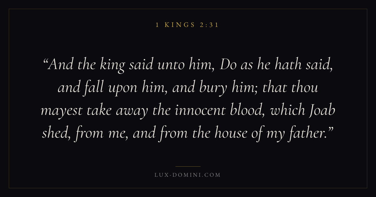 And the king said unto him, Do as he hath said, and fall upon him, and bury him; that thou mayest take away the innocent blood, which Joab shed, from me, and from the house of my father.