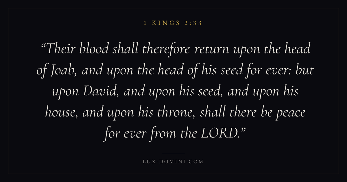Their blood shall therefore return upon the head of Joab, and upon the head of his seed for ever: but upon David, and upon his seed, and upon his house, and upon his throne, shall there be peace for ever from the LORD.