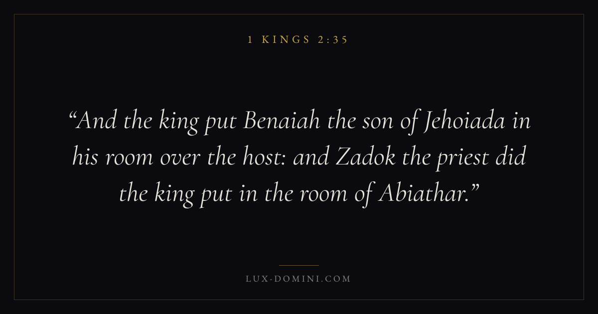 And the king put Benaiah the son of Jehoiada in his room over the host: and Zadok the priest did the king put in the room of Abiathar.