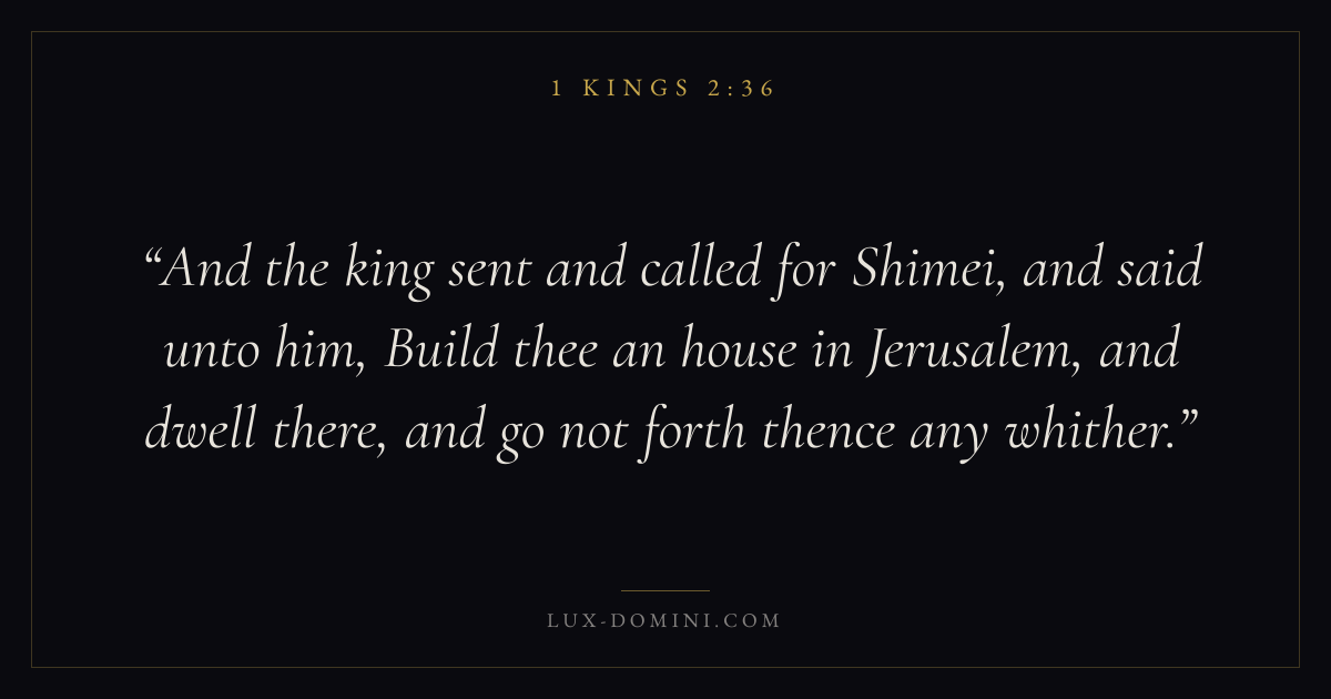 And the king sent and called for Shimei, and said unto him, Build thee an house in Jerusalem, and dwell there, and go not forth thence any whither.