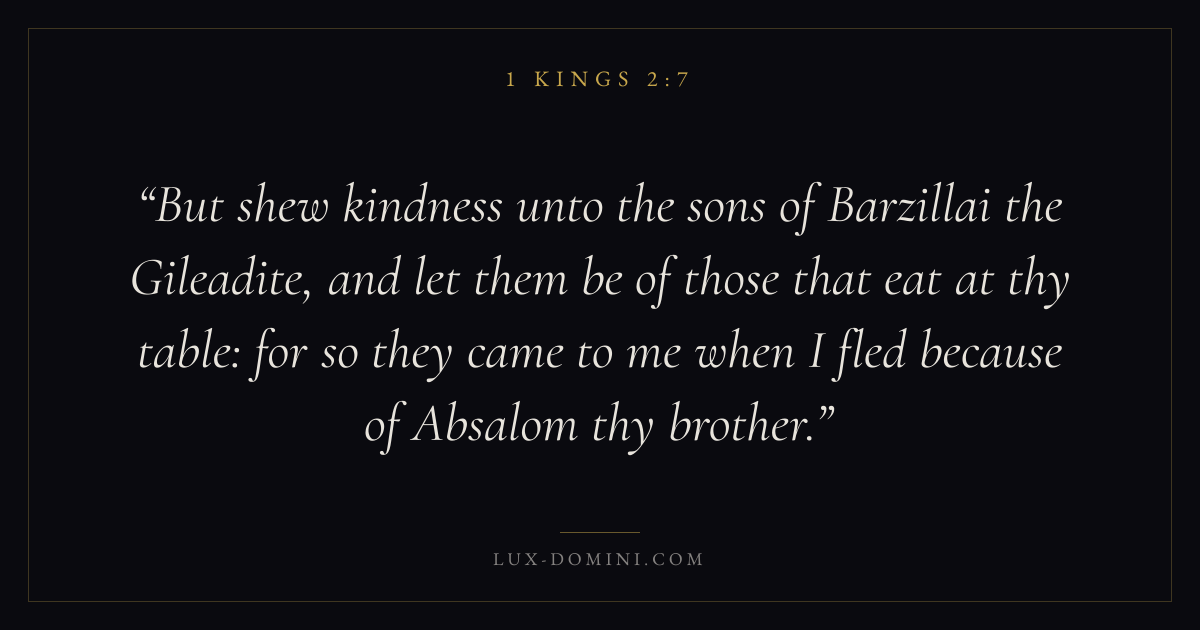 But shew kindness unto the sons of Barzillai the Gileadite, and let them be of those that eat at thy table: for so they came to me when I fled because of Absalom thy brother.
