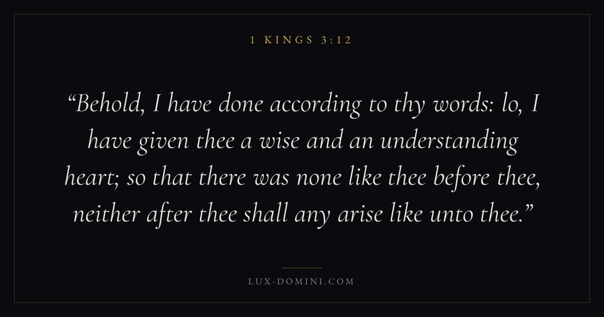 Behold, I have done according to thy words: lo, I have given thee a wise and an understanding heart; so that there was none like thee before thee, neither after thee shall any arise like unto thee.