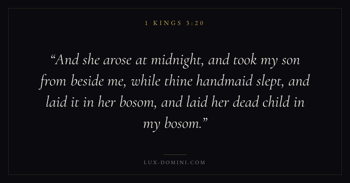 And she arose at midnight, and took my son from beside me, while thine handmaid slept, and laid it in her bosom, and laid her dead child in my bosom.