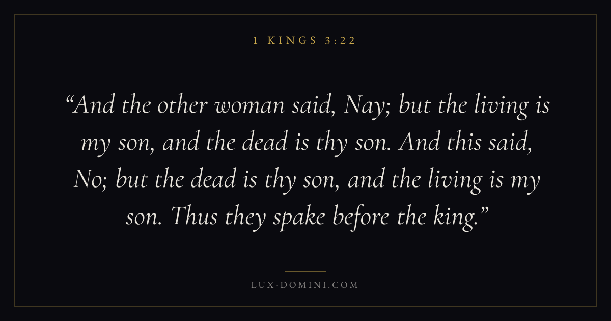 And the other woman said, Nay; but the living is my son, and the dead is thy son. And this said, No; but the dead is thy son, and the living is my son. Thus they spake before the king.